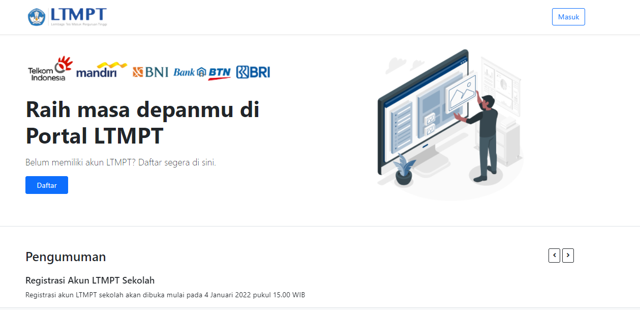 Akses halaman website https://portal.ltmpt.ac.id/ lalu klik menu Masuk